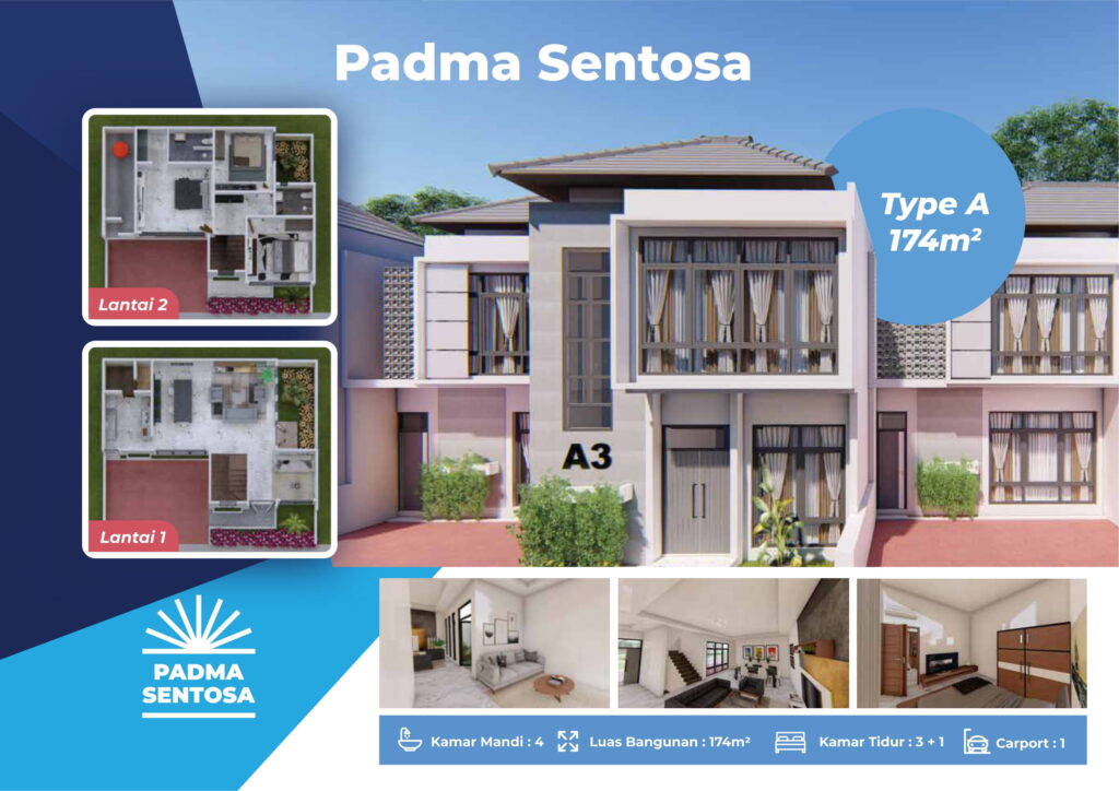 Padma Sentosa adalah produk rumah 2 lantai siap bangun dikawasan strategis Palagan Yogyakarta. Dengan desain yang modern, dan lingkungan yang nyaman, hunian ini sangat cocok untuk keluarga anda.